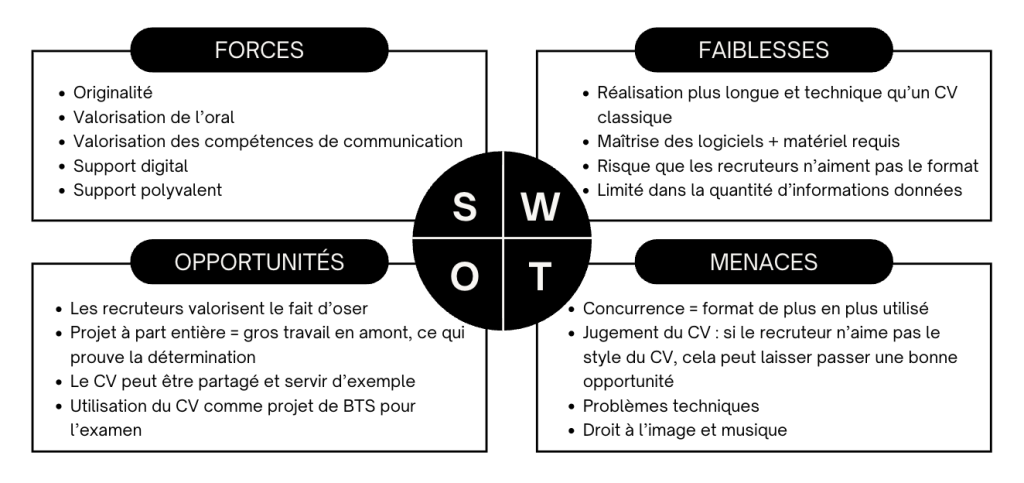 2/ contexte : je souhaite créer un CV vidéo car cela me permet de me démarquer auprès des recruteurs, de présenter mes compétences de manière créative et originale, et facilitera mon embauche pour une alternance (rempli les 3 objectifs de communication).